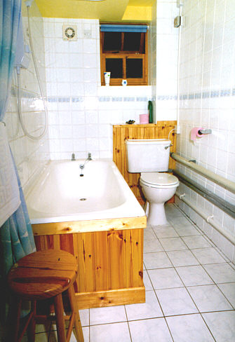 The Bathroom The main bathroom is fully tiled and has an electric hot air heater and exhaust fan. There is a powerful hot shower head over the bath and draw-around curtain. There is a vanity mirror with shaving light over the wash basin.
