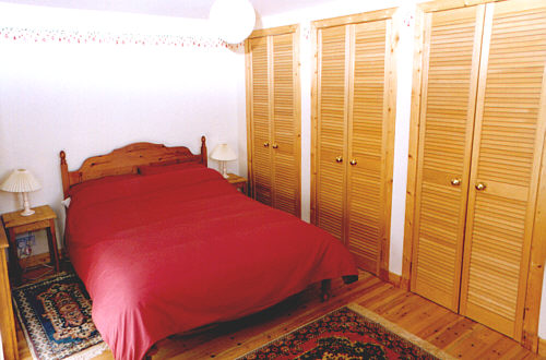 of storage space in the walk-in wardrobes. The comfy pine frame bed has a duvet